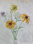 verstilde realistische en toch schetsmatige bloemenschilderijen, voor mij werkt dit schilderen naar de natuur als een meditatie, een methode om tot stilte te komen.